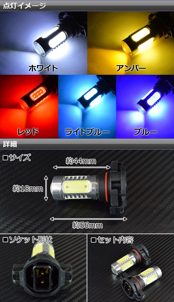 AP ハイパワー LEDバルブ フォグランプ交換用 H16 7.5W 選べる5カラー APFOGH16-7.5 入数:2個 カラー: ホワイト レッド ブルー アンバー ライトブルー