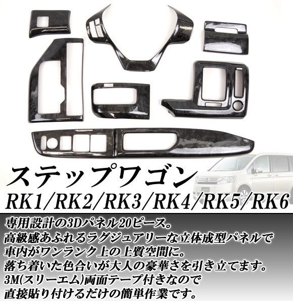 3Dインテリアパネル ホンダ ステップワゴン RK1〜RK6 2009年09月〜 選べる3インテリアカラー 入数:1セット(20個) AP-INT-021