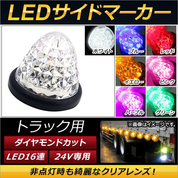 AP トラック用LEDサイドマーカー 16連 ダイヤモンドカット 24V専用 選べる7カラー AP-LEDTRCK16 カラー: ホワイト レッド ブルー イエロー グリーン パープル ピンク