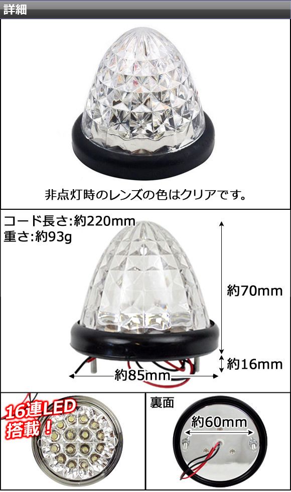 LED LEDサイドマーカー サイド マーカー サイドマーカー バスマーカー サイドインジケーター インジケーター LEDサイドインジケーター 方向指示器 トラックマーカー マーカーランプ マーカーライト ウインカー 16個 16灯 16発 24V 24ボルト バス トラック トレーラー トラクター 汎用 側面 側方 ダイアモンドカット ダイヤカット ダイアカット クリスタルカット クリスタル カット 8面カット 8面 鏡面仕上げ クリアレンズ レンズ無色 無色 透明 クリア レンズ