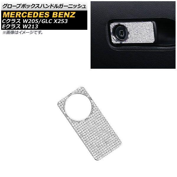 グローブボックスハンドルガーニッシュ メルセデス・ベンツ Cクラス W205 2015年〜 シルバー ラインストーン付き AP-IT969-SI