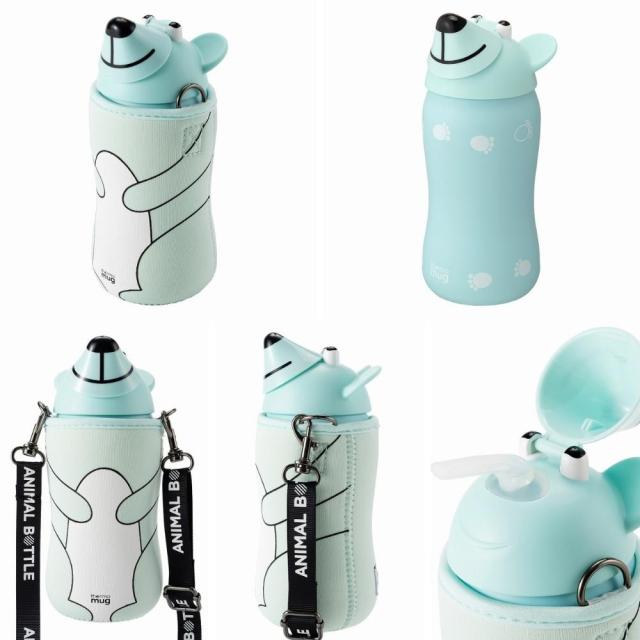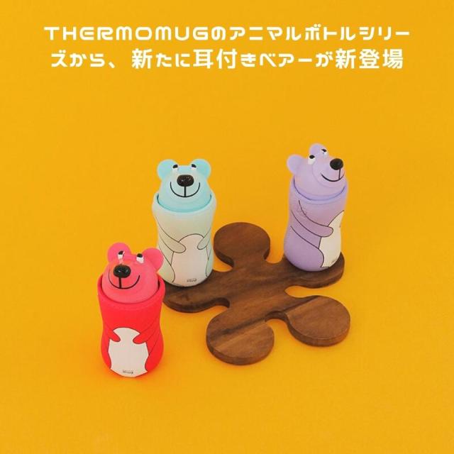 thermomugのアニマルボトルシリーズから、新たに耳付きベアーが新登場。容量は0.38L。カバーケースのストラップは長さ調整が可能。ペールトーンのマットカラーです。