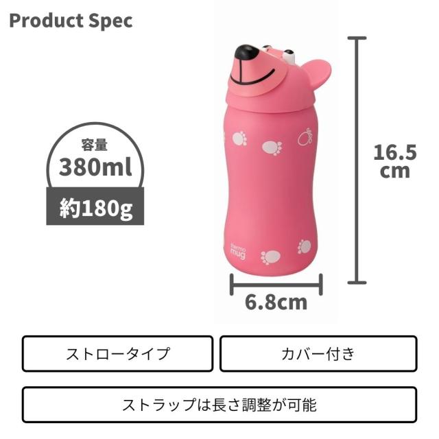 thermomugアニマルボトル水筒ストロー付き380mlキッズ子供AB20-38ランチグッズかわいい