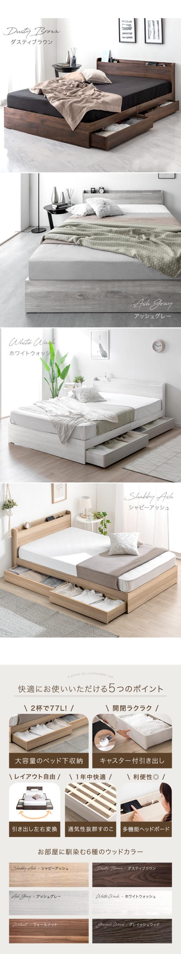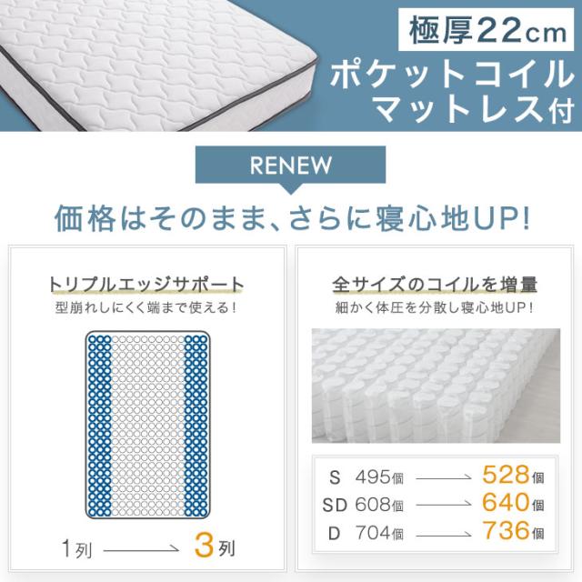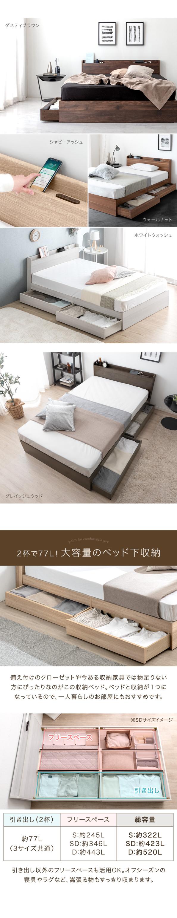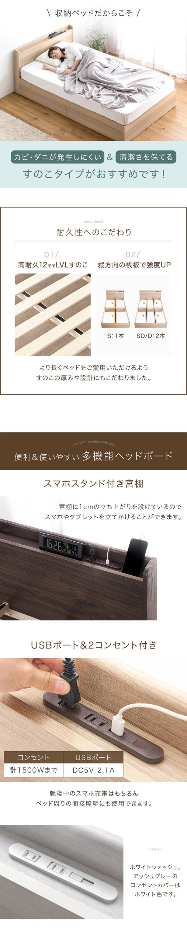 マットレス付 宮棚&2口コンセント 収納付きベッド シングル フレーム マットレス付き ベッドフレーム ベッド ポケットコイルマットレス ベッドマット付き