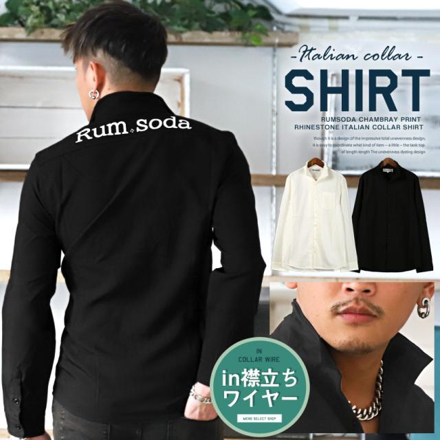 長袖シャツ メンズ イタリアンカラーシャツ【RUMSODA(ラムソーダ)シャンブレープリントラインストーンイタリアンカラーシャツ】 aa-1317