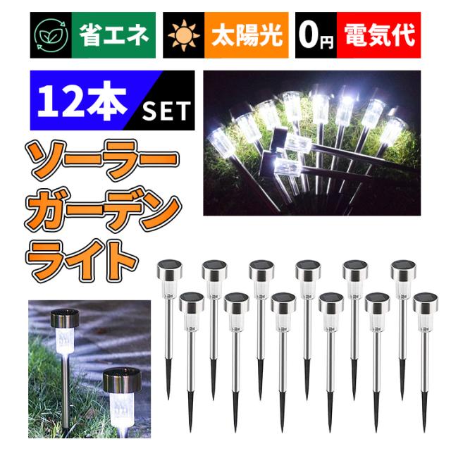 【新生活応援タイムセール中】 LEDガーデンライト 12本セット ソーラーライト 屋外 防水 おしゃれ ガーデンライト 屋外 ソーラー ガーデン ソーラーライト パスライト 耐衝撃 自動点灯消灯 埋め込み式