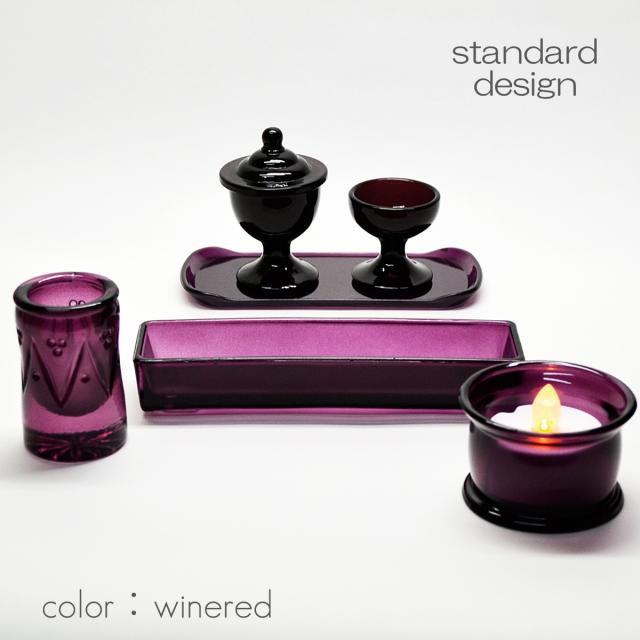 仏具セット 050 ワインレッド 創価学会用仏具 ガラス製 ミニ仏壇用 おしゃれ SGI SOKA