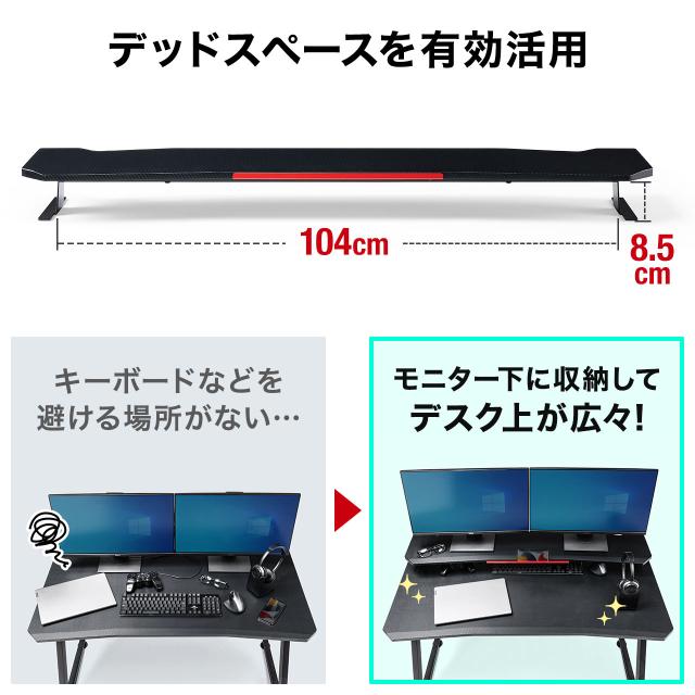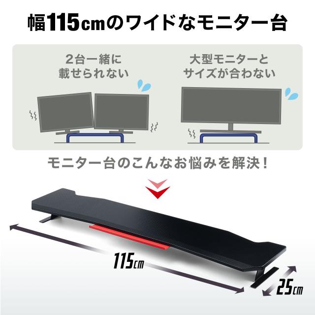 ゲーミングモニタースタンド 幅115cm カーボン調 ブラック スチール脚 デュアルディスプレイ向け[100-MRG001]