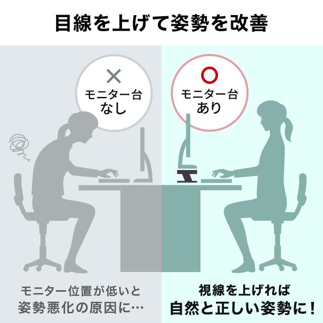 ●24インチモニターを2台載せられる幅115cmのモニタースタンドです。●キーボードやマウスをモニター下の空間に収納してデスクを広く使えます。