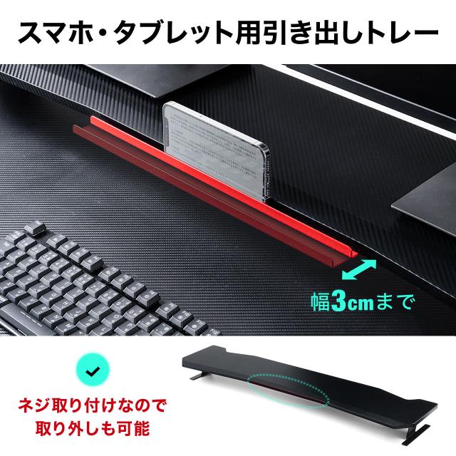 ●スマートフォンやタブレットを立てられる引き出し式のトレーが付いています。