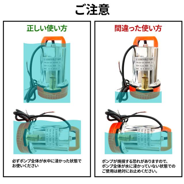 必ずポンプ全体が水中に浸かった状態で
