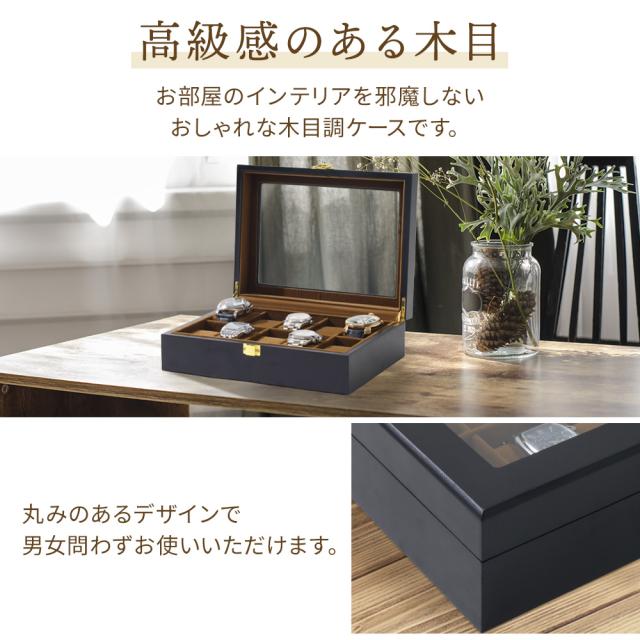 時計 収納 ケース 時計収納 10本用 腕時計 腕時計収納 収納ケース 木製 木目 コレクションケース ウォッチケース インテリア ブラック ベロア 黒 ベロア素材 おしゃれ シンプル プレゼント ギフト メンズ レディース 時計ボックス 保管 父の日 敬老の日 クリスマス 生活雑貨 寝室 アクセサリー ピアス ブレスレット ボックス 展示 観賞用 ペアウォッチ 誕生日 卒業 お祝い 母の日