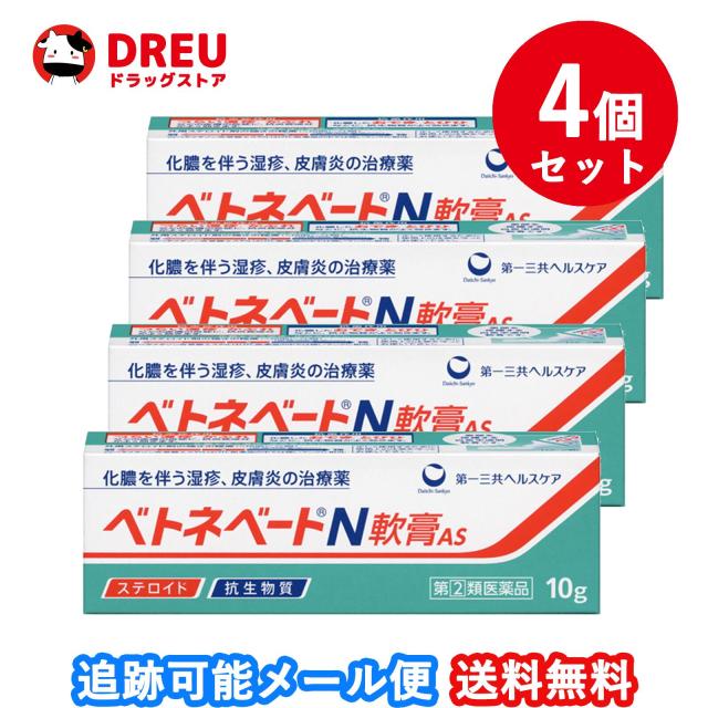 【4個セット!送料無料】ベトネベートN 軟膏AS(10g)【指定第2類医薬品】【ベトネベート】 抗生物質 ステロイド 化膿 皮膚薬 湿疹 かぶれ とびひ