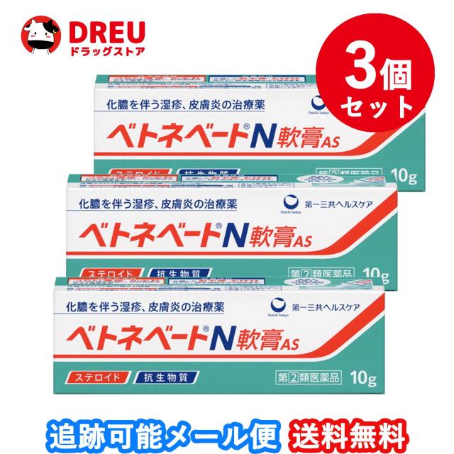【3個セット!送料無料】ベトネベートN 軟膏AS(10g)【指定第2類医薬品】【ベトネベート】 抗生物質 ステロイド 化膿 皮膚薬 湿疹 かぶれ とびひ】