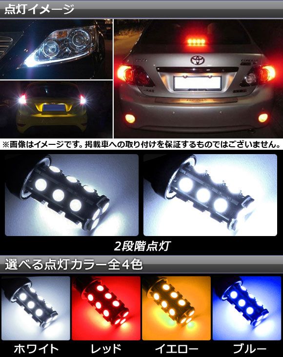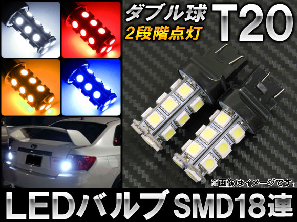 LEDバルブ T20 ダブル球 18連 SMD 5050 12V 2段階点灯 選べる4カラー 入数:2個 AP-LB044 カラー: ホワイト レッド ブルー イエロー