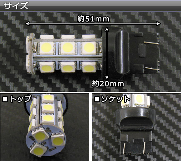LEDバルブ T20 ダブル球 18連 SMD 5050 12V 2段階点灯 選べる4カラー 入数:2個 AP-LB044