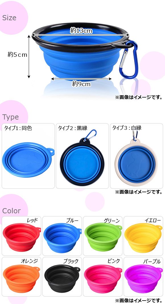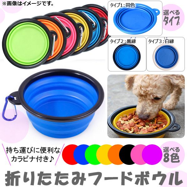 ペット用品 折りたたみフードボウル カラビナ付き 折りたたんで、コンパクト! 選べる8カラー 選べる3タイプ AP-PP0002 カラー: ブラック レッド ブルー イエロー グリーン オレンジ パープル ピンク