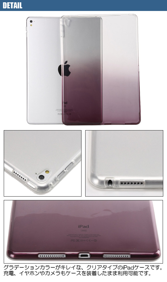 グラデーションカラーがキレイな、クリアタイプのiPadケースです。