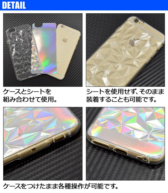 立体的な加工を施されたケースにホログラムシートを組み合わせる、iPhone用ソフトケースです。