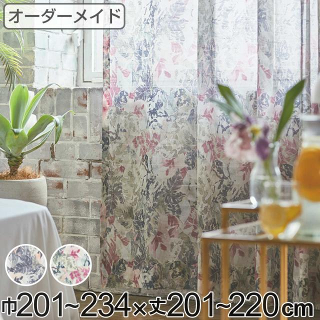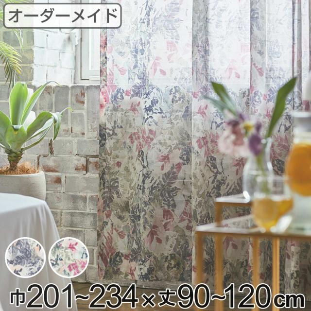 レースカーテン オーダーカーテン ボタニカナウ 1.5倍ヒダ 巾201〜234×丈90〜120cm ( オーダー サイズオーダー オーダーメイド カーテン レース 2つ山 1cm単位 おしゃれ 防炎 洗濯 可能 洗える 窓 出窓 日本製 リーフ柄 )