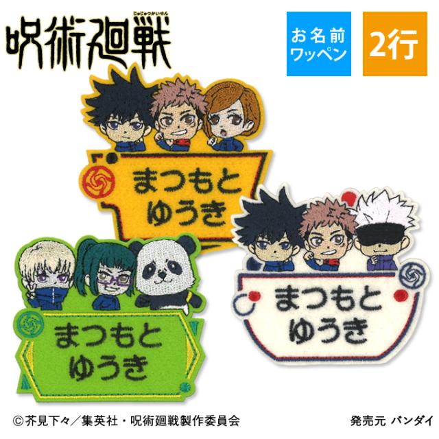お名前ワッペン 呪術廻戦 キャラクター 2行 3枚セット ネームワッペン アイロン 入園 刺繍 プレゼント OR