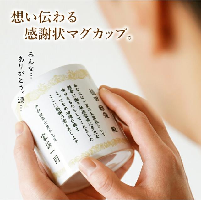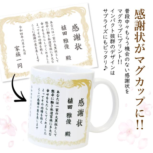 マグカップ 感謝状 感謝状マグカップ 翌々営業日出荷おしゃれ 陶器 コーヒー カップ メッセージ 賞状 表彰状 父 母 両親 上司 先生 誕生日 卒業 卒園 卒団記念 退職祝い プレゼント 名入れ ギフト