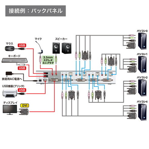 ●1組のキーボード・マウス・ディスプレイで4台のパソコンを切り替えて使用できます。