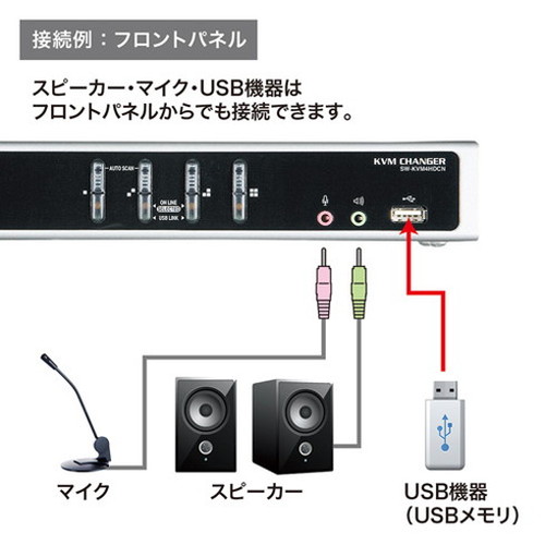 ●KVM、USB2.0ハブ、オーディオの独立切り替えが可能です。