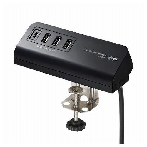 サンワサプライ クランプ式USB充電器 TypeC1ポート+USB3ポート・ブラック ACA-IP51BK(代引不可)【送料無料】