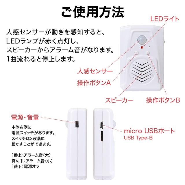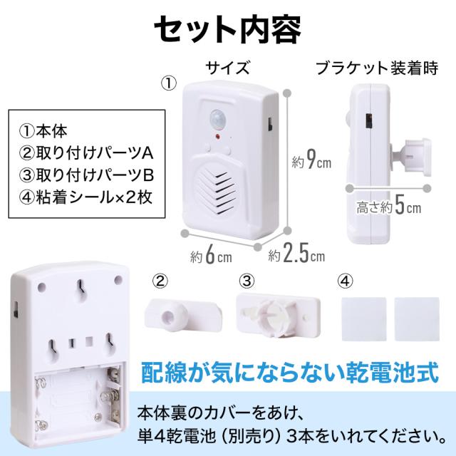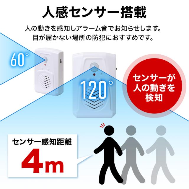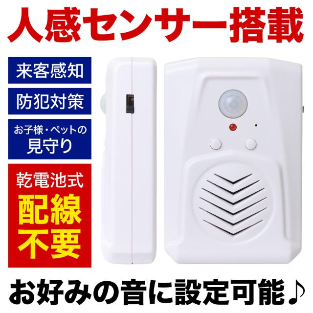 人感センサー アラーム チャイム 自動 感知 警告 警報 防犯 乾電池式 防犯センサー 音消し アラーム音を好きな音に変えられる