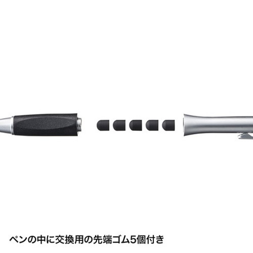 ●交換用の先端ゴムが5個付属しており、タッチペン本体内に収納できます。