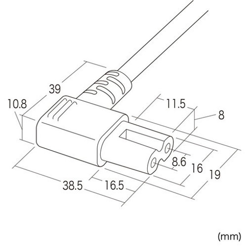 ■コネクタ仕様:ACインレット(メガネ型・L型コネクタ)・2Pオス(絶縁キャップ付き)