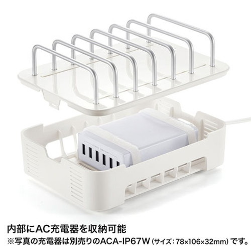 ●スタンド内部にAC充電器を収納することができるため、設置機器をまとめて充電できる充電スタンドとして使用することができます。