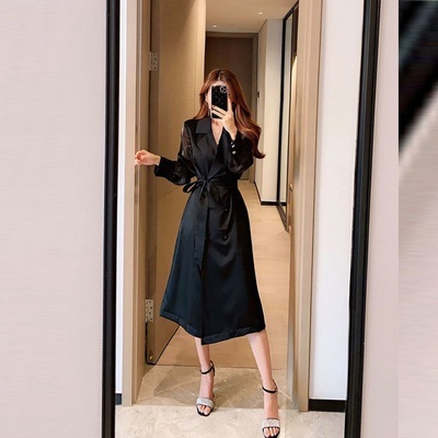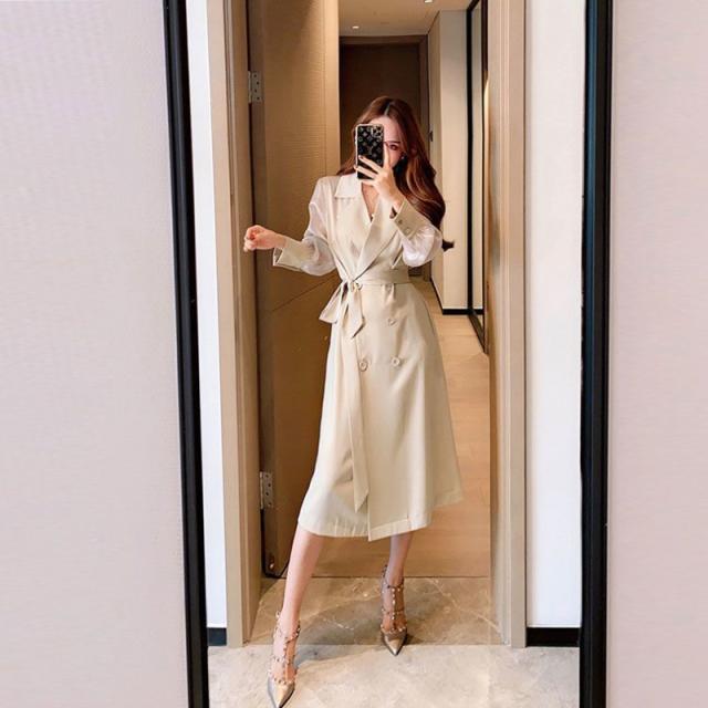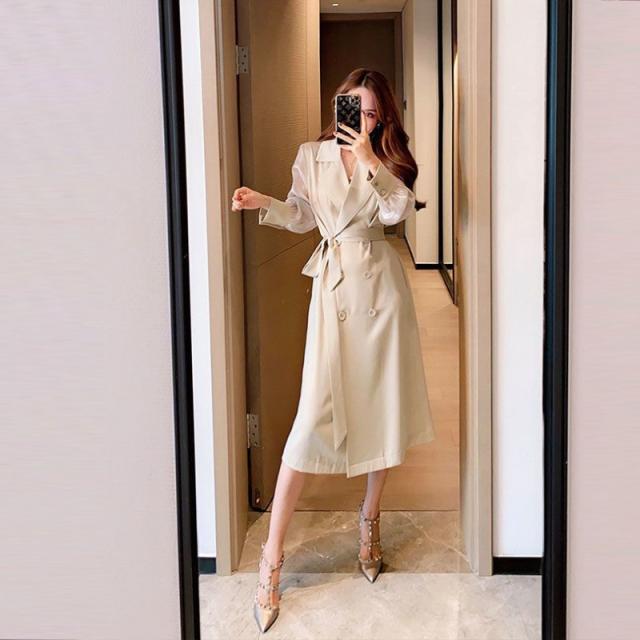 レディースオーガンジースリーブトレンチコート ウエストリボン 膝丈 薄手 透け感 春 秋 大人可愛い きれいめ 上品 おしゃれ お洒落 大人女子 こなれ感 個性的 存在感 デート お出かけ 女子会 キャンパスコーデ パーティー イベント 二次会 色 カーキ ブラック サイズ展開 S M L XL