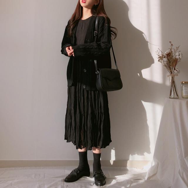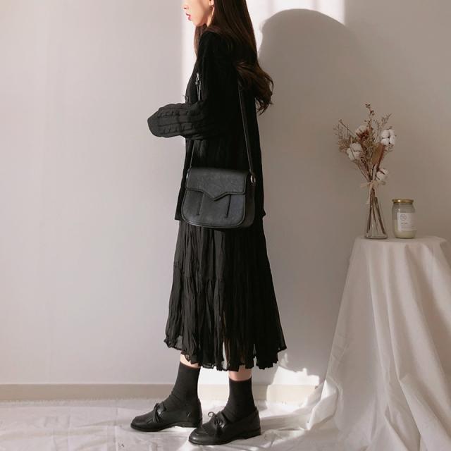 プリーツシフォンワンピ ワンピース ロング ロング丈 長袖 Uネック ストレート プリーツ シフォン かわいい シンプル こなれ感 ラブリー キュート ガーリー とろみ感 無地 春 10代 20代 30代 デート 女子会 休日 普段使い S M L XL 白 ホワイト 黒 ブラック ピンク