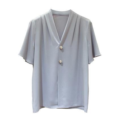 シャツ Vネック 半袖ブラウス トップス 大人可愛い 大人女子 こなれ感 かわいい 大人可愛い きれいめ 学生 通学 お洒落 お散歩コーデ かわいいお揃い 双子コーデ 着回し 普段使い OL 通勤 ママ マタニティ 柔らか素材 モテ 10代 20代 デート 春 夏 秋 ライトブルー ホワイト アプリコット レッド