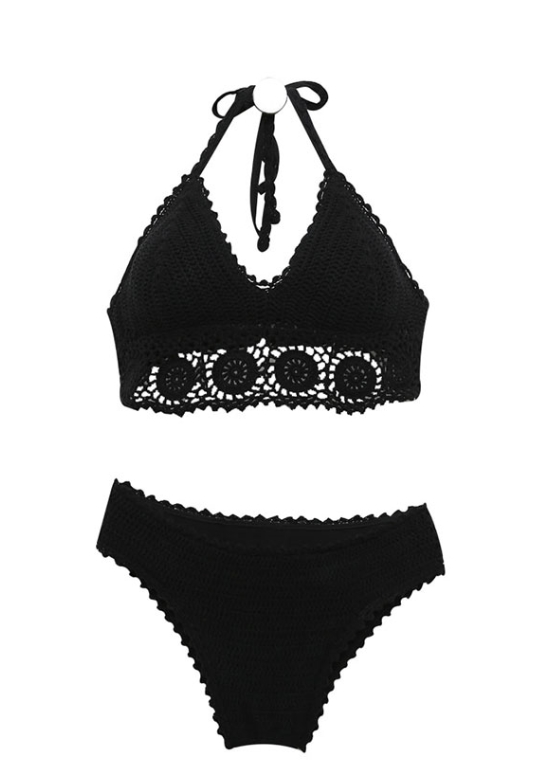 ニットビキニ パッド付き 刺繍 編み込み 胸元 谷間 谷間魅せ セット 上下セット 2点セット かわいい 大人可愛い おしゃれ お洒落 レース フリル モダン エスニック エキゾチック エキゾチック M L XL 黒 ブラック 白 ホワイト 10代 20代 30代 レディース 女性用 女の子 韓国