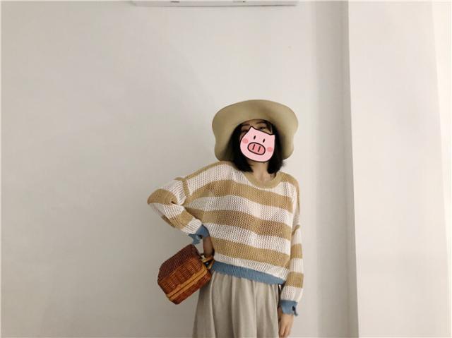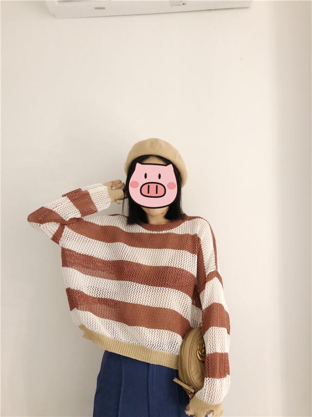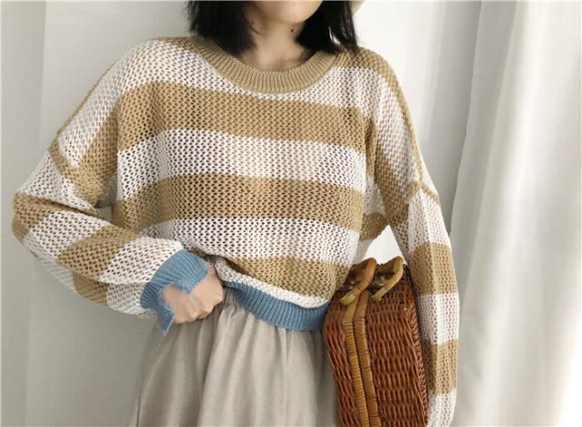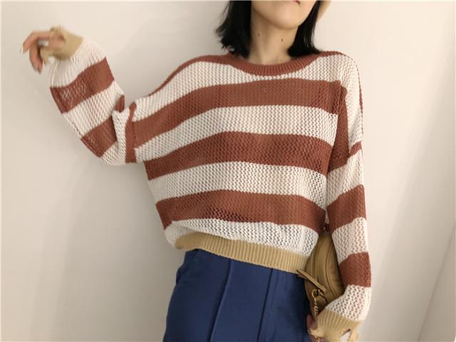 トップス ボーダー柄 ショート丈 ニットセーター 透かし編み ざっくり編み ニット ミニ丈 セーター ルーズ ゆったり プルオーバー カジュアル 透け感 ラウンドネック ダメージ カットアウト ドロップショルダー バットスリーブ 大人可愛い 可愛い かわいい 大人女子 通勤 通学 学生 お出かけ デート 休日 10代 20代 レディース 普段着 普段使い 着回し 春 秋 ワンサイズ カーキ ベージュ レッド ブラウン 茶色