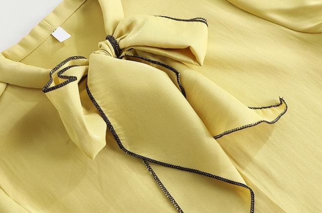 セットアップ シャツ ブラウス × デニム ジーンズ 2点セット お得 ツーピース 上下セット 春 秋 ガーリー コーデ 襟付き リボンタイ リボン付き 長袖 フロントボタン トップス ボトムス パンツ スタイル 大人可愛い 大人女子 かわいい 可愛い 通勤 通学 お出かけ デート 女子会 旅行 普段使い 普段着 着回し お洒落 おしゃれ 大人 カジュアル レディース 女性用 S M L XL イエロー 黄色 ブラック 黒