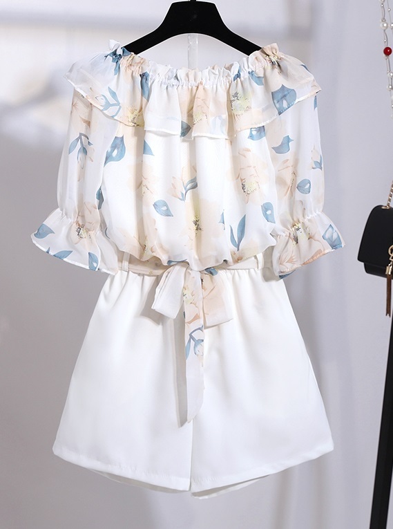 セットアップ ブラウス シャツ フリル 七分袖 花柄 ショート パンツ 上下セット 大人可愛い 大人女子 こなれ感 かわいい 大人可愛い きれいめ フェミニン 韓国系ファッション オフィス ビジネス OL 通勤 お洒落 お散歩コーデ かわいい 2色展開 ホワイト ピンク サイズ展開 S M L XL 2XL 学生 通学 お揃い 双子コーデ 上下セット 着回し 普段使い 柔らか素材 モテ 10代 20代 デート