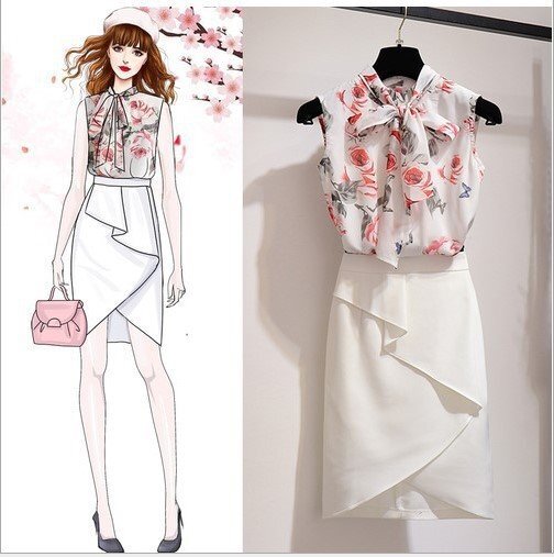トップス+スカート セットアップ 花柄 上下セット カジュアル 韓国系ファッション オフィス ビジネス OL 通勤 お洒落 お散歩コーデ 学生 通学 お揃い 双子コーデ 着回し 普段使い 柔らか素材 モテ 20代 30代 かわいい 春 夏 秋 S M L XL XXL ホワイト