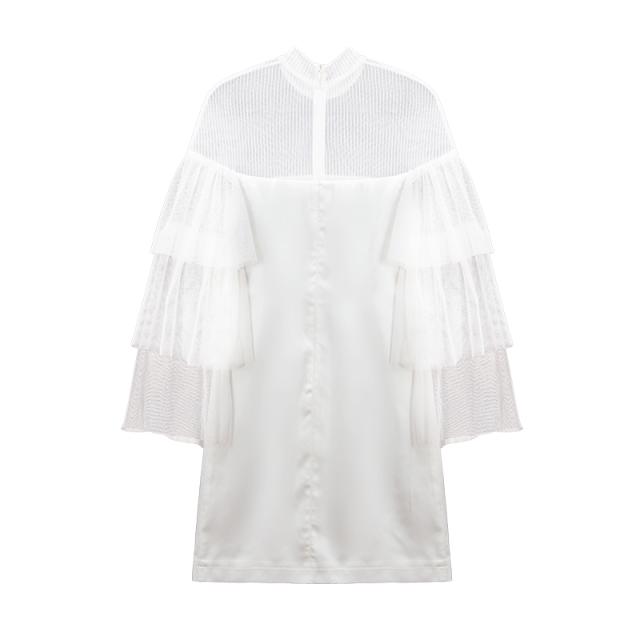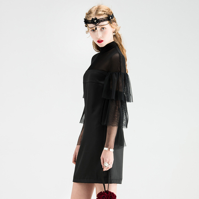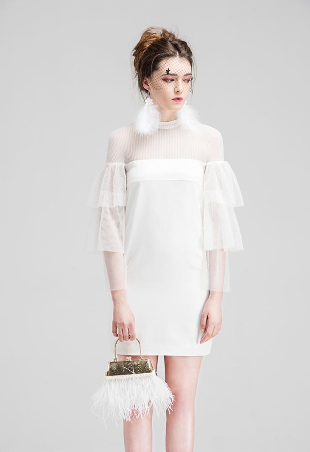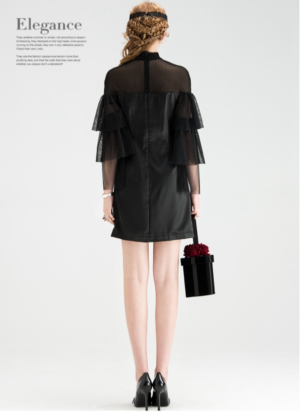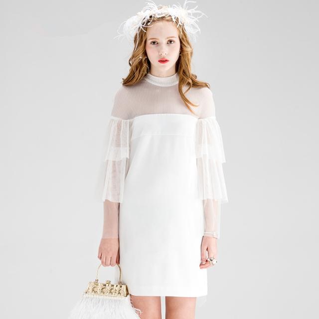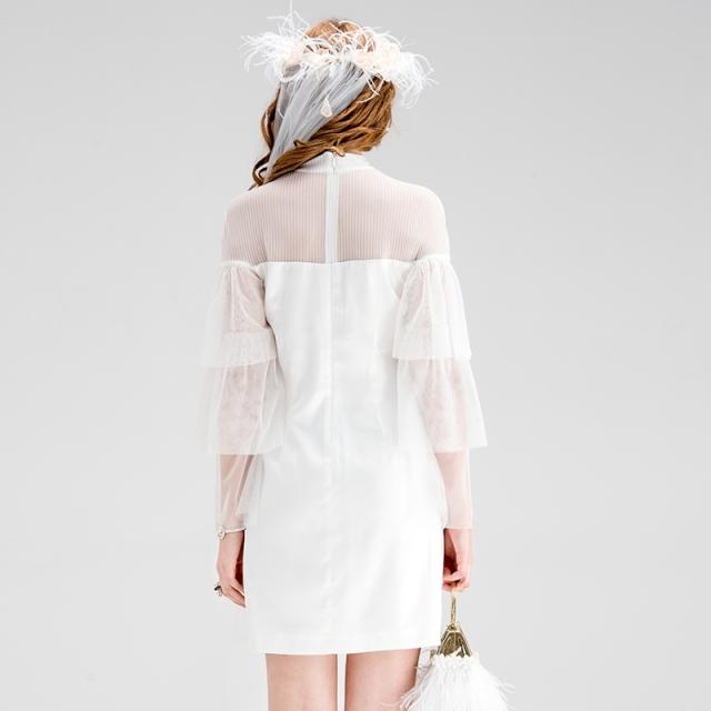 ドレス レディース ブラック ホワイト ワンピース ミニ 丈 ハイネック トランペット スリーブ フレア 透け感 セクシー 上品 エレガント モダン 存在感 フォーマル きれいめ 可愛い シンプル お洒落 休日 デート お出かけ お呼ばれ パーティー イベント OL 学生 大学生 ママ