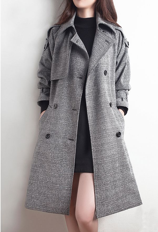 ダブル ブレスト コート レディース 冬 大きいサイズ グレー トレンチ チェック柄 ミドル丈 膝丈 ウエストマーク リボン ベルト アウター 上着 大人 可愛い きれいめ シンプル 上品 通勤 OL オフィスカジュアル 通学 学生 デート お出かけ 女子会 休日 着回し 普段使い 防寒