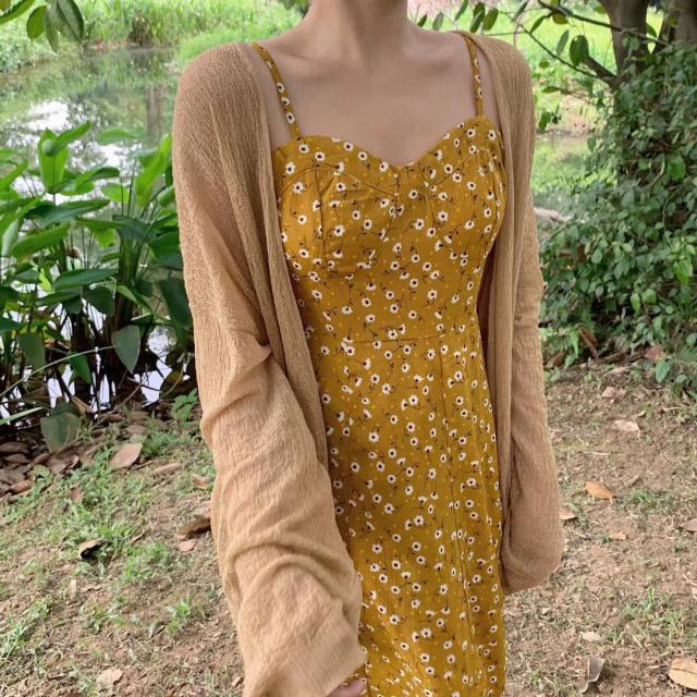 フローラルノースリーブワンピ ワンピース ロング 袖なし ノースリーブ シフォン ハイウエスト かわいい おしゃれ レトロ ラブリー キュート ガーリー 花柄 小花柄 フラワー 春 夏 10代 20代 デート お出かけ 公園デビュー 休日 普段使い モテ 美脚 脚長 S M 赤 レッド 黄色 イエロー