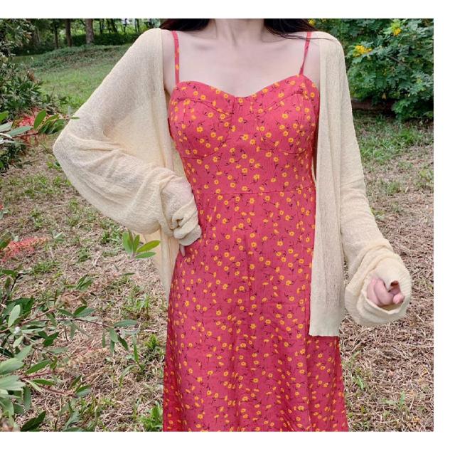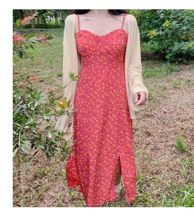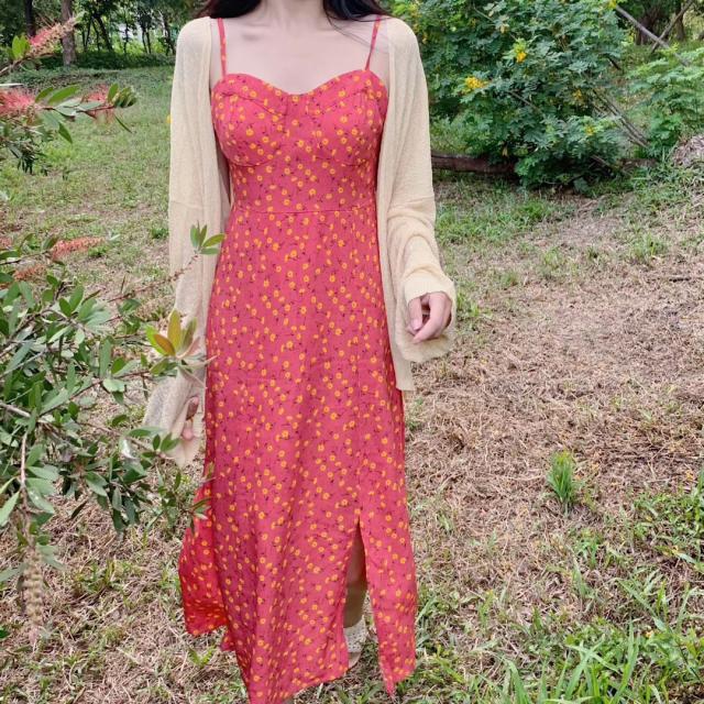 フローラルノースリーブワンピ ワンピース ロング 袖なし ノースリーブ シフォン ハイウエスト かわいい おしゃれ レトロ ラブリー キュート ガーリー 花柄 小花柄 フラワー 春 夏 10代 20代 デート お出かけ 公園デビュー 休日 普段使い モテ 美脚 脚長 S M 赤 レッド 黄色