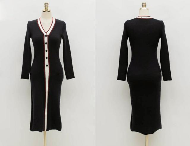 セータータイトワンピ ワンピース セーター ミモレ 袖あり 長袖 Vネック 襟なし タイト Iライン 大人可愛い シンプル おしゃれ レトロ 秋 冬 レディース OL 学生 デート お出かけ 女子会 休日 韓国 韓国系 オルチャン スタイル 楽ちん フリーサイズ 黒 ブラック