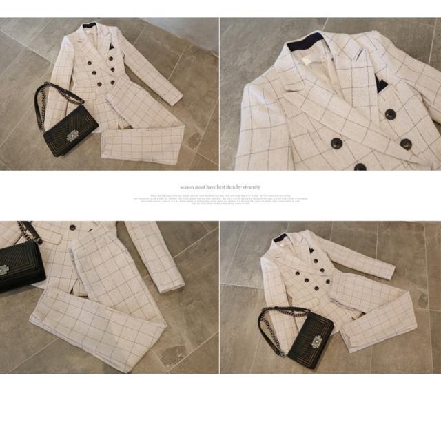 セットアップ 上下 2点セット グラフチェック柄 レディース パンツスーツ ジャケット テーラードカラー ダブルブレスト ウエストシェイプ 長袖 大きめボタン パンツ アンクル丈 足首見せ テーパード きれいめ シンプル オフィスカジュアル 大人 レトロ 着回し 仕事 お出かけ