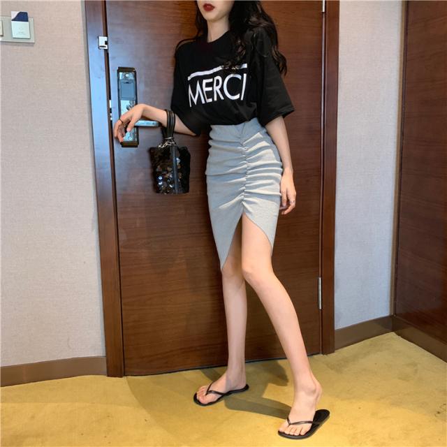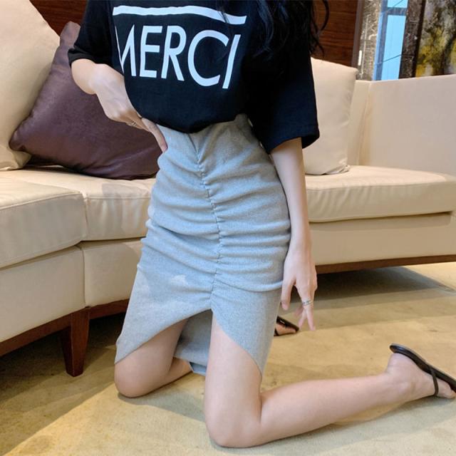 レディース サイドギャザー タイト バンテージ スカート ハイウエスト スリット ギャザー フィッシュテール ミニ丈 膝上 ふんわり おしゃれ きれいめ 大人 可愛い ガーリー カジュアル 美脚 脚長 着回し お出かけ デート パーティー 女子会 二次会 春 夏 秋 冬 グレー