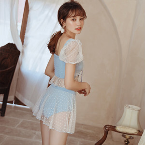 水着 レース ビキニ ショート パンツ セパレート ノンワイヤー パッド付き レースアップ かわいい きれいめ お洒落 キュート M L XL 水色 プール 海 リゾート デート 夏 10代 20代 可愛い 体系 カバー 美スタイル 女性 レディース