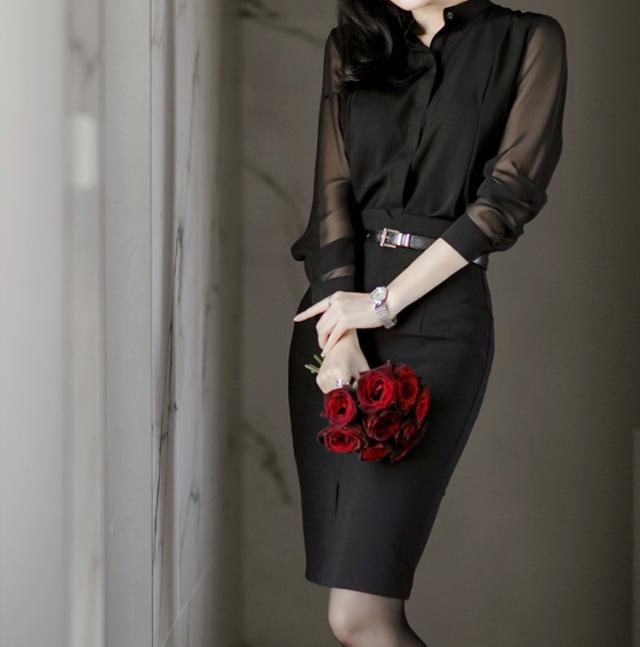 シャツ 長袖 レディース ブラック 大きいサイズ XL 2XL ブラウス トップス シフォン シースルー スタンドカラー フォーマル オフィス 上品 きれいめ かわいい シンプル おしゃれ 着痩せ 細見え 着回し 合わせやすい 休日 デート お出かけ 旅行 OL 学生 大学生 ママ 通勤 通学